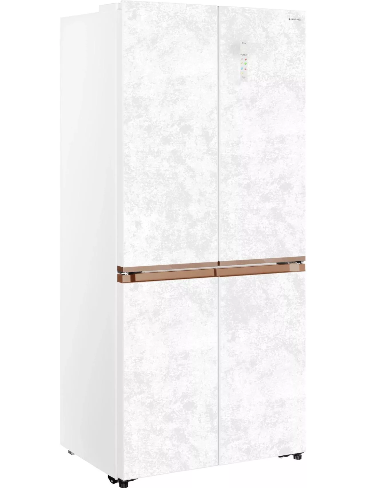 Инверторный холодильник HIBERG i-RFQ 630G WS – изысканный представитель бренда. Эффектный фасад из закаленного стекла в белом цвете с эффектом мрамора станет украшением любого кухонного и столового интерьера. Усовершенствованная конструкция отдельно стоящей модели и глубина 60 см позволят при необходимости гармонично интегрировать холодильник в мебельный гарнитур: достаточно всего 3 мм свободного пространства по бокам. А угол открытия двери в 90 градусов не препятствует полному выдвижению ящиков.