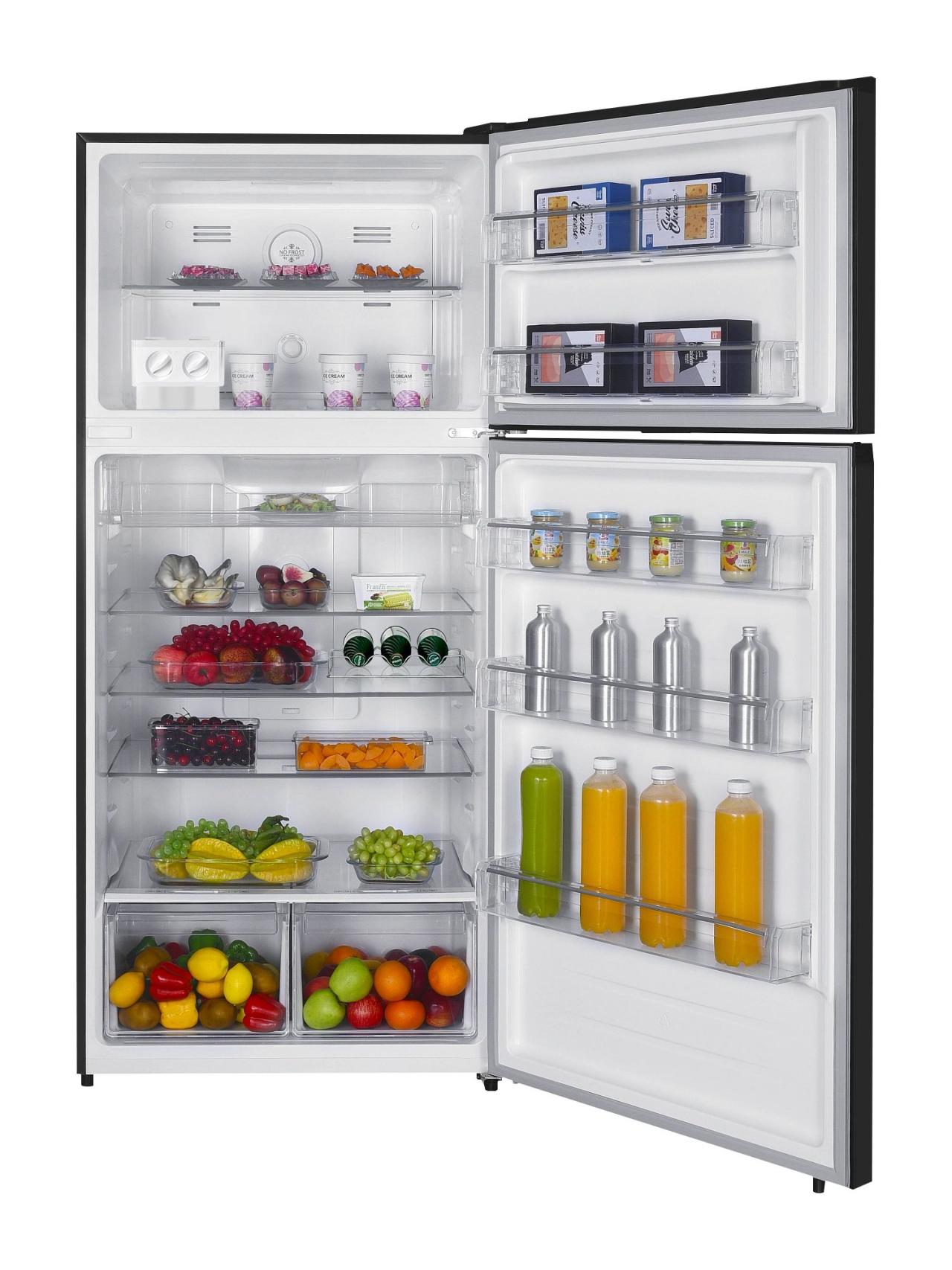 В холодильном отделении — три полки из закаленного стекла, элегантная полка-держатель для бутылок, два вместительных ящика с регулировкой влажности и просторная зона свежести с откидной шторкой, а также три удобные полки на дверце. Такая организация позволяет хранить овощи, фрукты и деликатесы в условиях, приближённых к профессиональным. В морозильной камере предусмотрены стеклянная полка, две полки на двери и быстрый доступ к ледогенератору.