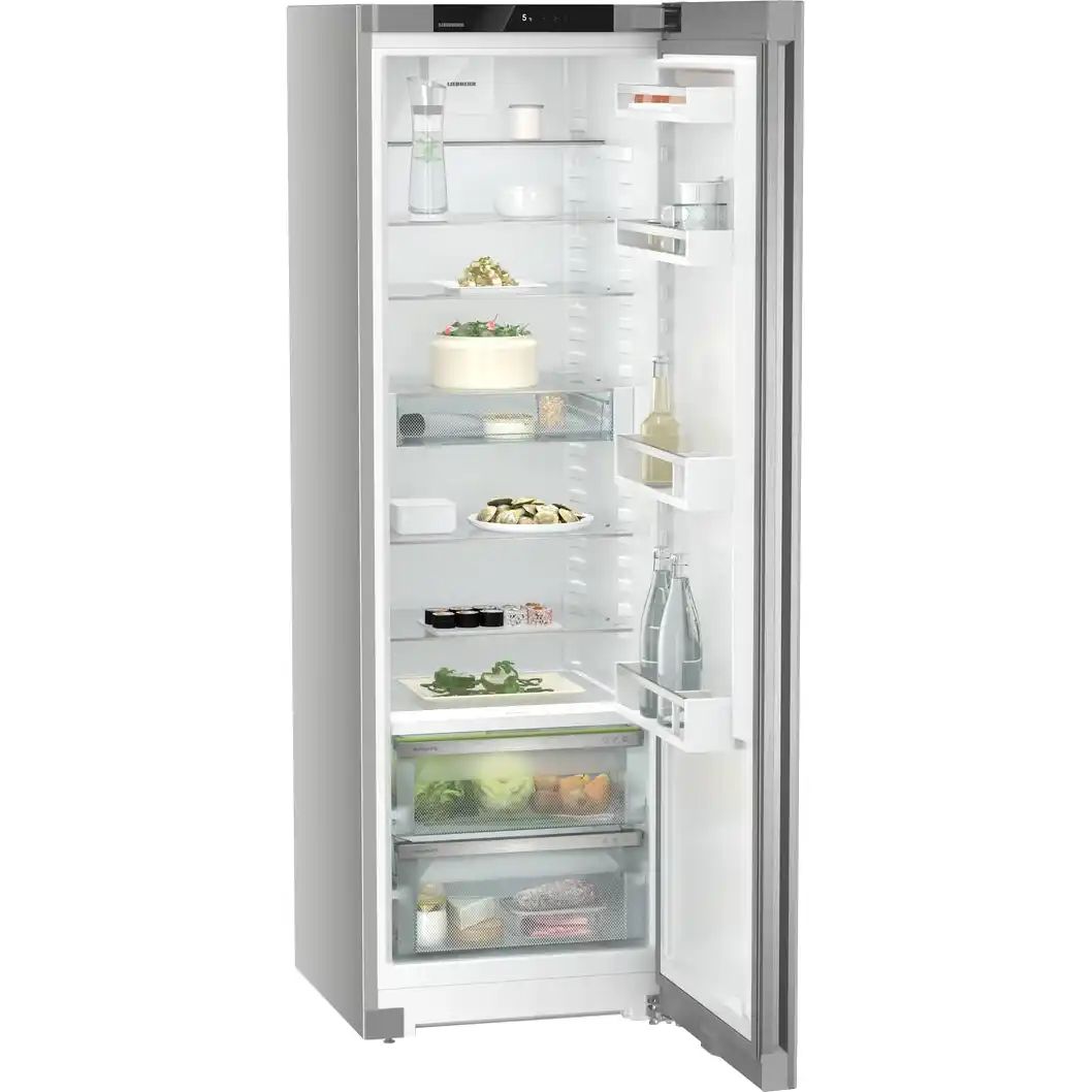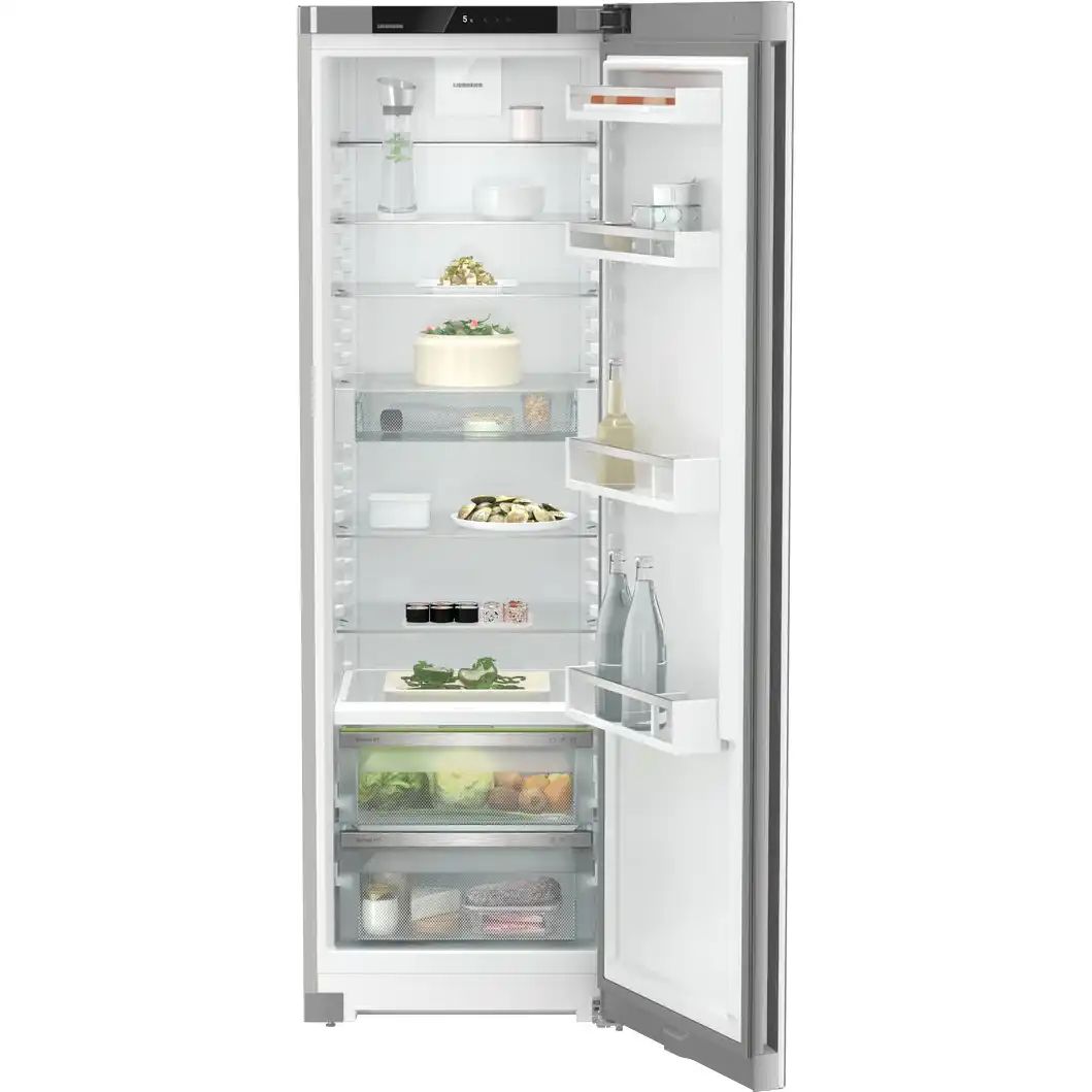Холодильник Liebherr RBSFC 5220 — отдельностоящая однокамерная модель на 377 л с циркуляционным охлаждением и SN-T (до +43°C). Зона BioFresh Plus (2 контейнера) сохраняет продукты при околонулевой температуре и разной влажности, а DrySafe — для длительного хранения. Сенсорная панель регулирует температуру (+2°C до +9°C), режим «Отпуск» предотвращает запахи, SuperCool ускоряет охлаждение.