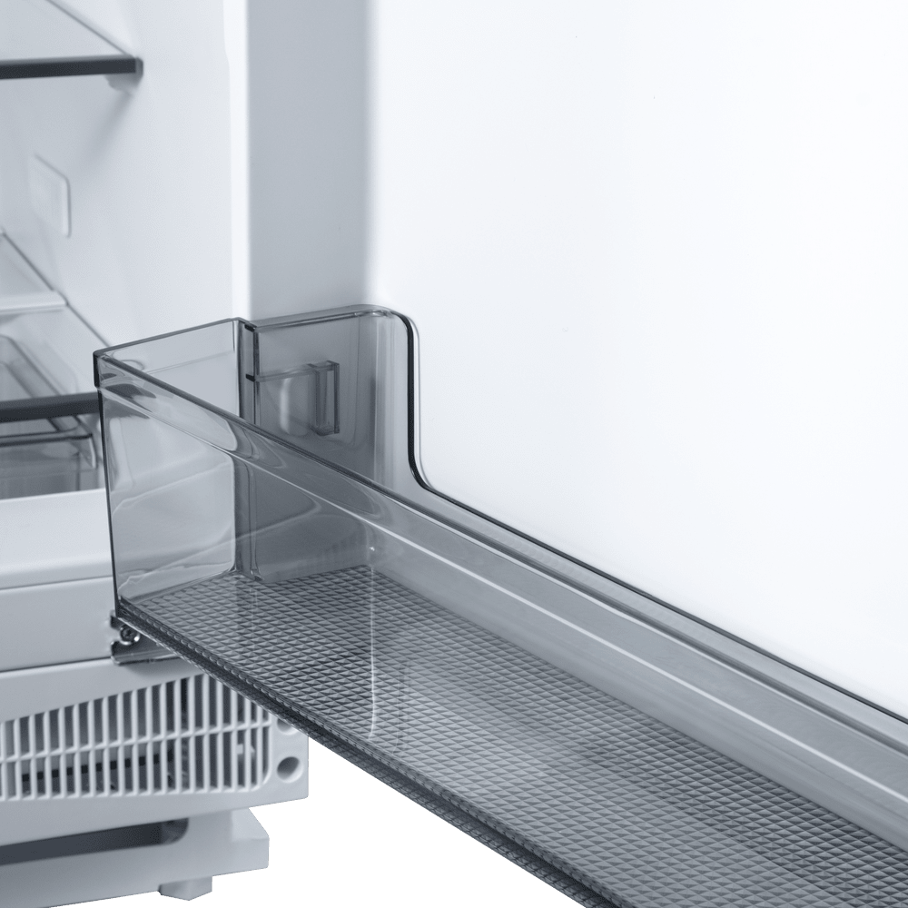 Продуманная организация внутреннего пространства помогает рационально разместить покупки. В наличии 3 полки из закаленного стекла, 2 ящика для овощей и фруктов и 2 боковые полки на дверце — все на своих местах, чтобы вы быстрее находили нужное. Освещение LED делает содержимое камеры хорошо видимым даже вечером.