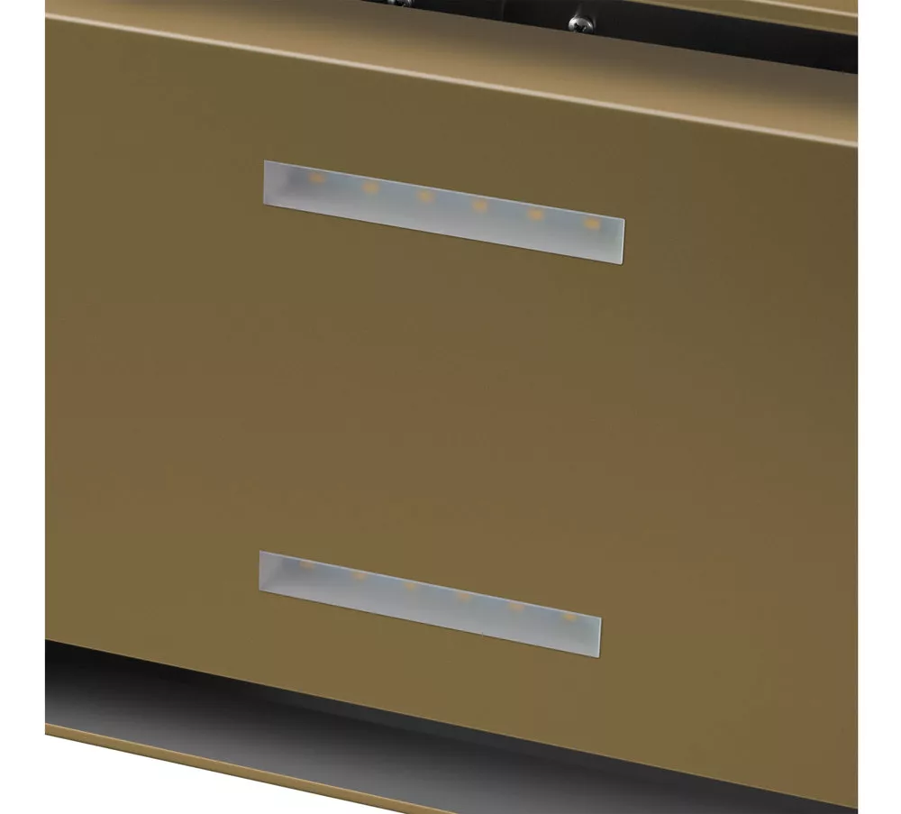 Технология забора воздуха по всей площади вытяжки. Жиропоглощающий фильтр прикрыт стеклянной панелью. Она не блокирует доступ к нему, придает устройству эстетичный внешний вид и упрощает уход.