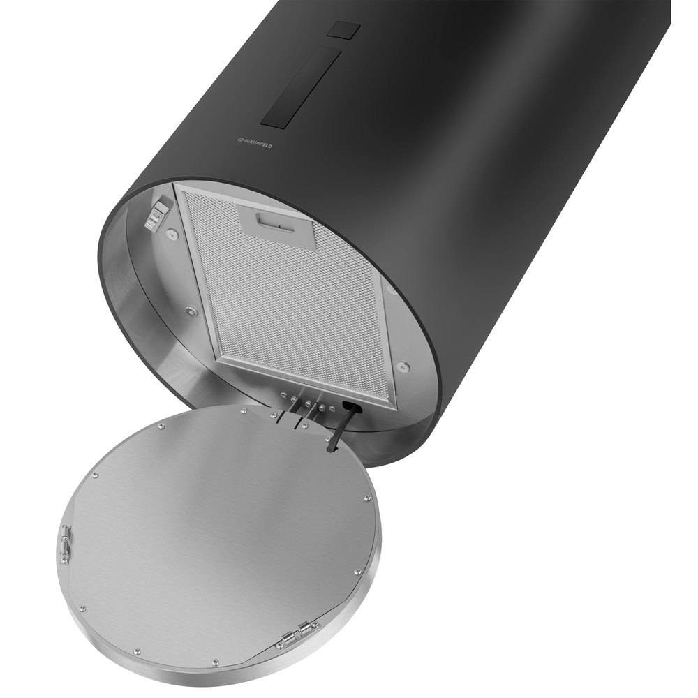 Кухонная вытяжка MAUNFELD Lee Wall (sensor) 39 черный создана для тех, кто ценит стиль и функциональность. Цилиндрическая форма корпуса из нержавеющей стали с термостойким покрытием эффектно смотрится на стене и органично дополняет современный интерьер.