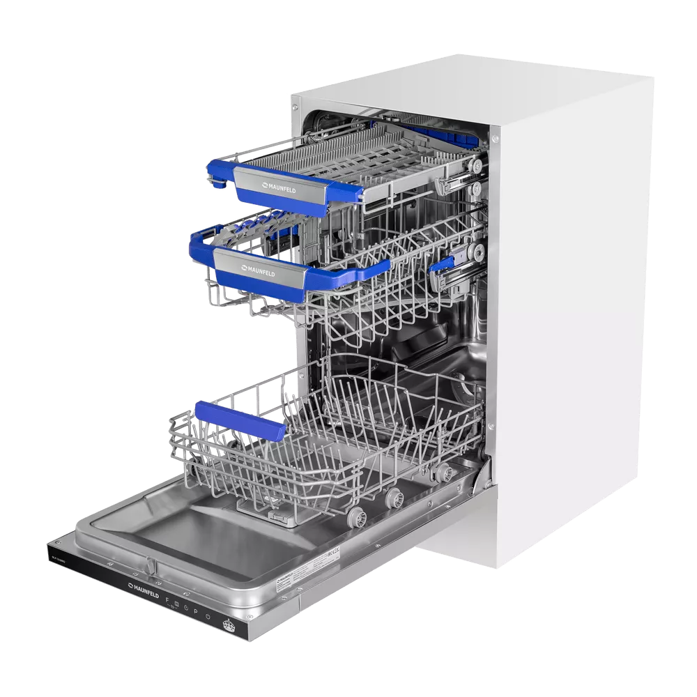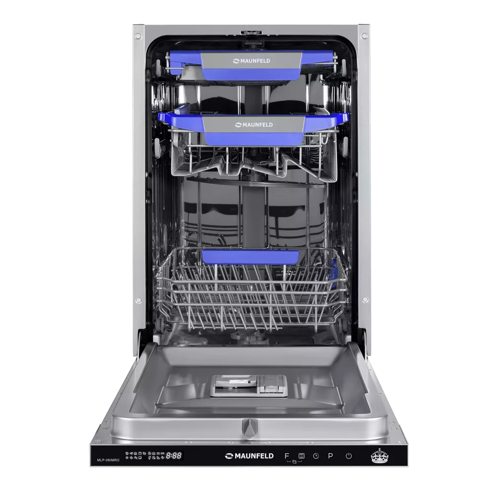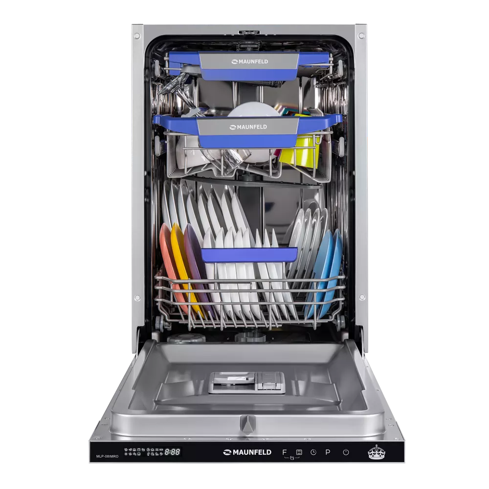 Узкая встраиваемая посудомоечная машина MAUNFELD MLP-08IMRO создана для кухонь, где важен каждый сантиметр, но не хочется жертвовать удобством. При ширине 45 см она бережно отмывает 10 комплектов, экономя место и ваше время.