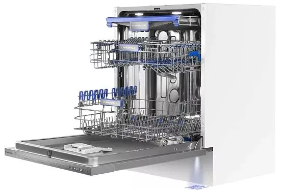 Особенностью данной модели является индикация луча на полу, что позволяет визуально контролировать процесс работы машины. Внутреннее освещение облегчает загрузку и выгрузку посуды, а регулируемая верхняя корзина и выдвижной лоток для столовых приборов делают использование машины максимально комфортным.
