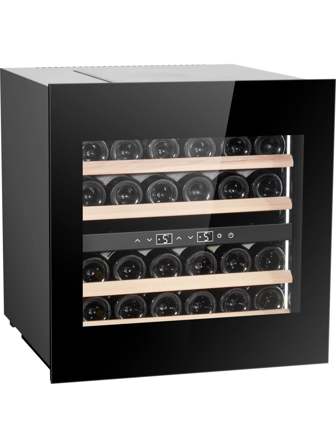 Вместимость до 24 бутылок реализована на полках из натурального бука: телескопические направляющие обеспечивают плавный выезд, мягкая LED-подсветка создаёт атмосферу, а двухзонная конструкция позволяет одновременно хранить белые и красные вина. На модель действует гарантия 2 года.